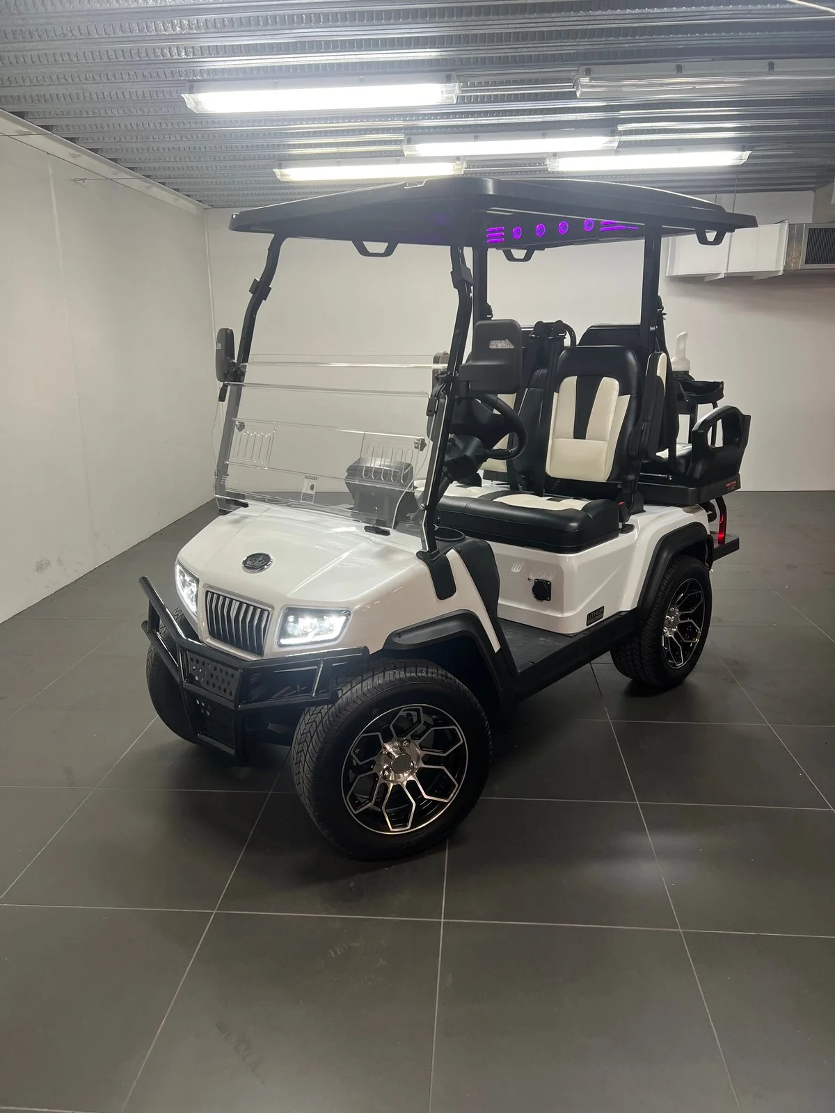 The 2024 Paladin Evolution D5 Golf Cart is a new, advanced electric vehicle designed to deliver powerful performance, luxury, and cutting-edge technology. Powered by a 6.3 kW AC motor paired with a 48V 110Ah lithium-ion battery, it offers efficient, quiet operation with a top speed of 20 mph. The advanced 400 Amp Evolution AC controller ensures smooth acceleration and precise control, ideal for golf courses, neighborhoods, and recreational use.