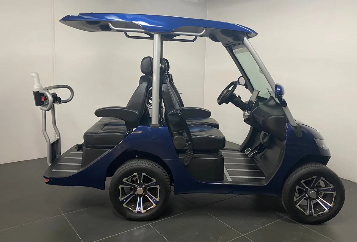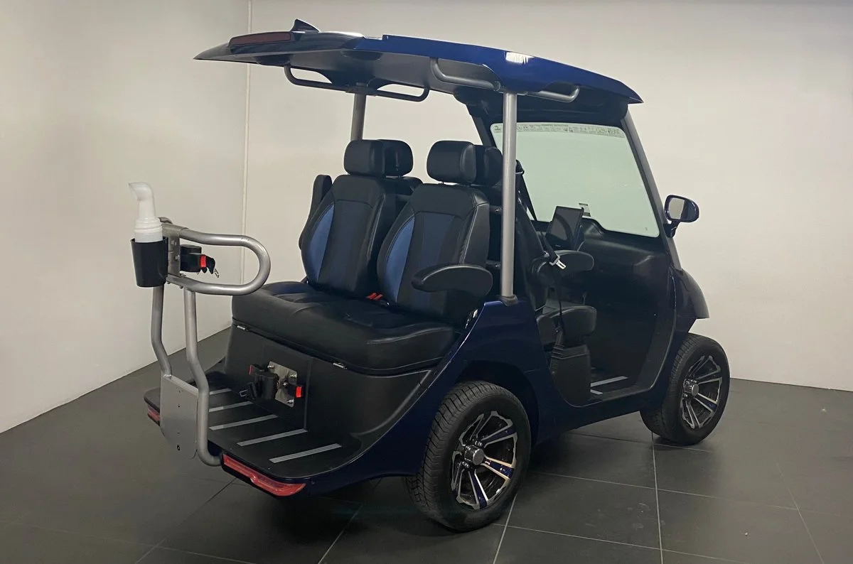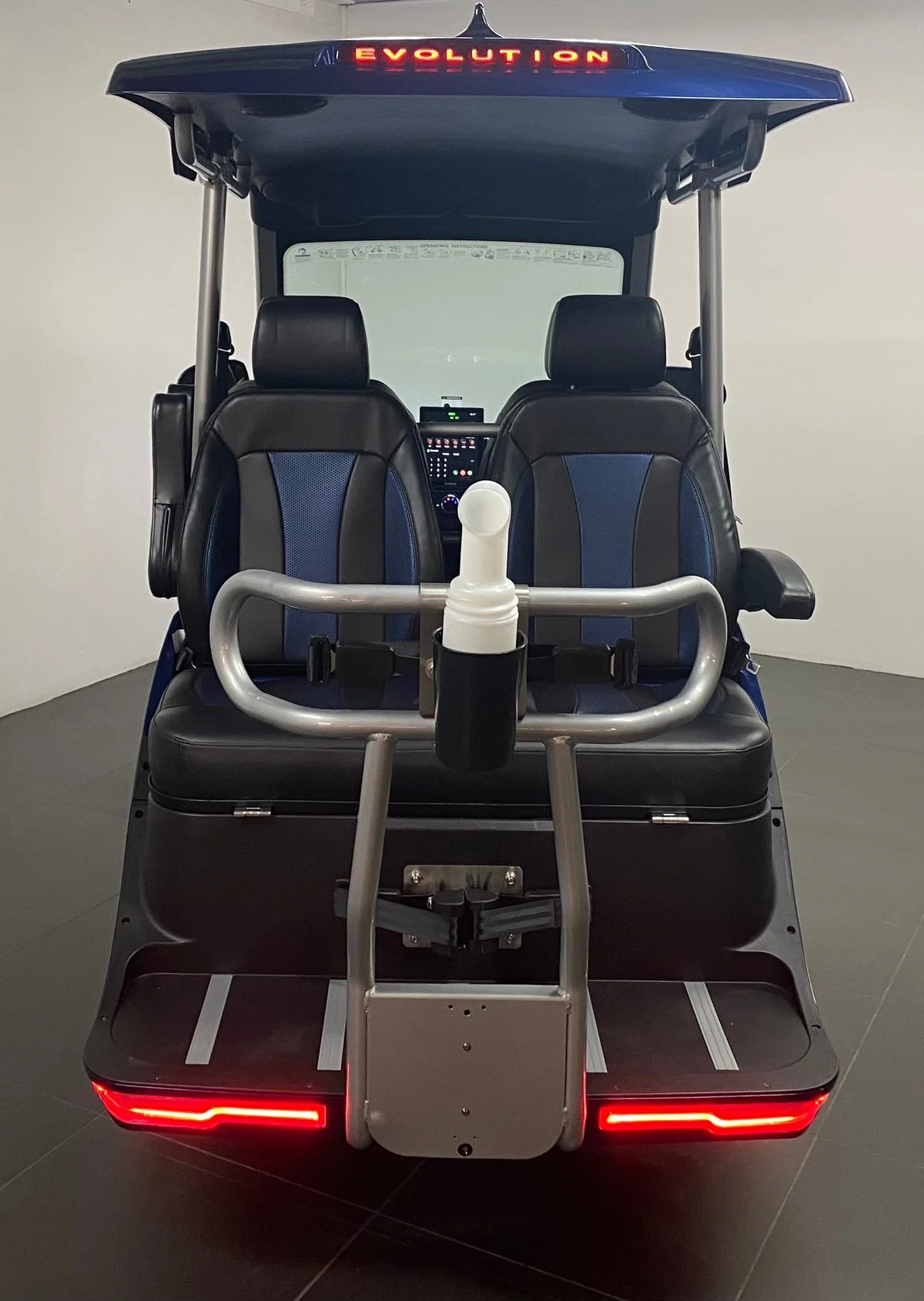 The 2024 Blue Evolution D3 Golf Cart is a premium, feature-rich electric golf cart designed for performance, comfort, and style. Powered by a AC motor paired with a 400 Amp AC controller, this vehicle delivers smooth, quiet acceleration and efficient power management. The lithium-ion battery system provides reliable performance with a driving range of up to 40 miles on a full charge, making it ideal for golf courses, resorts, and personal transportation within private communities.