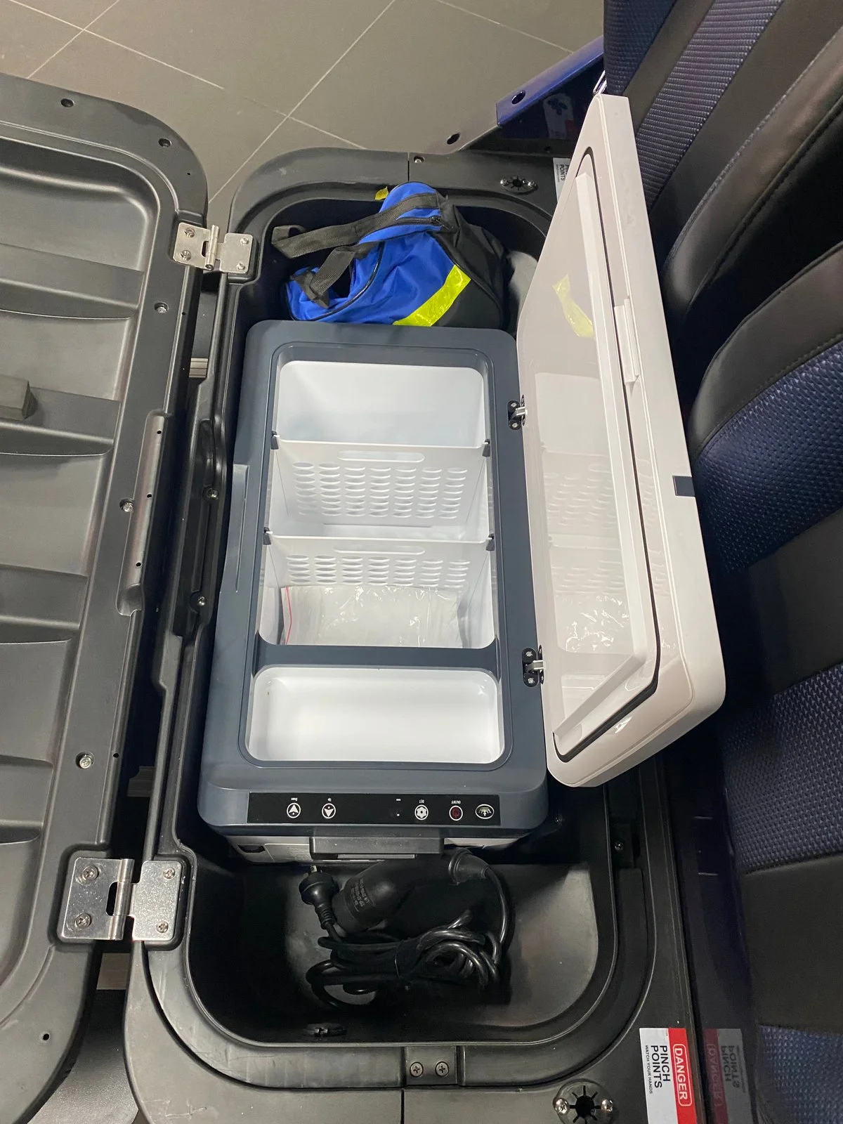 The D3 features a spacious 2+2 seating configuration with two seats facing forward and two rear seats for passengers or cargo. The seats are two-tone adjustable premium upholstery with integrated seat belts, enhancing both safety and comfort. It includes modern amenities such as a 9.7-inch touchscreen display with speedometer, odometer, Bluetooth connectivity, and a built-in backup camera, making navigation and control seamless.