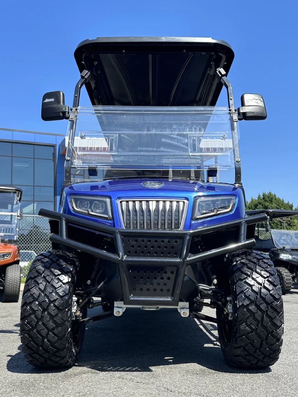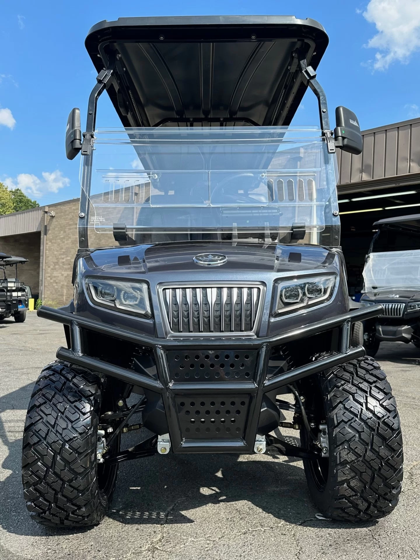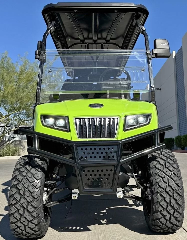 Additional Features: Foldable windshield with sliding sub-windows, two-tone luxury seats with foldable armrests, seat back cover with cupholder, handrail, charging port, and storage pocket, rear storage trunk, LED lighting, and off-road ready off-road tread tires