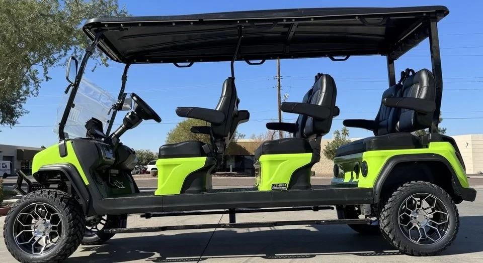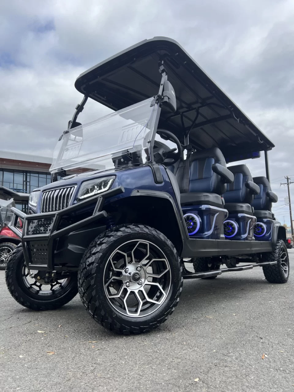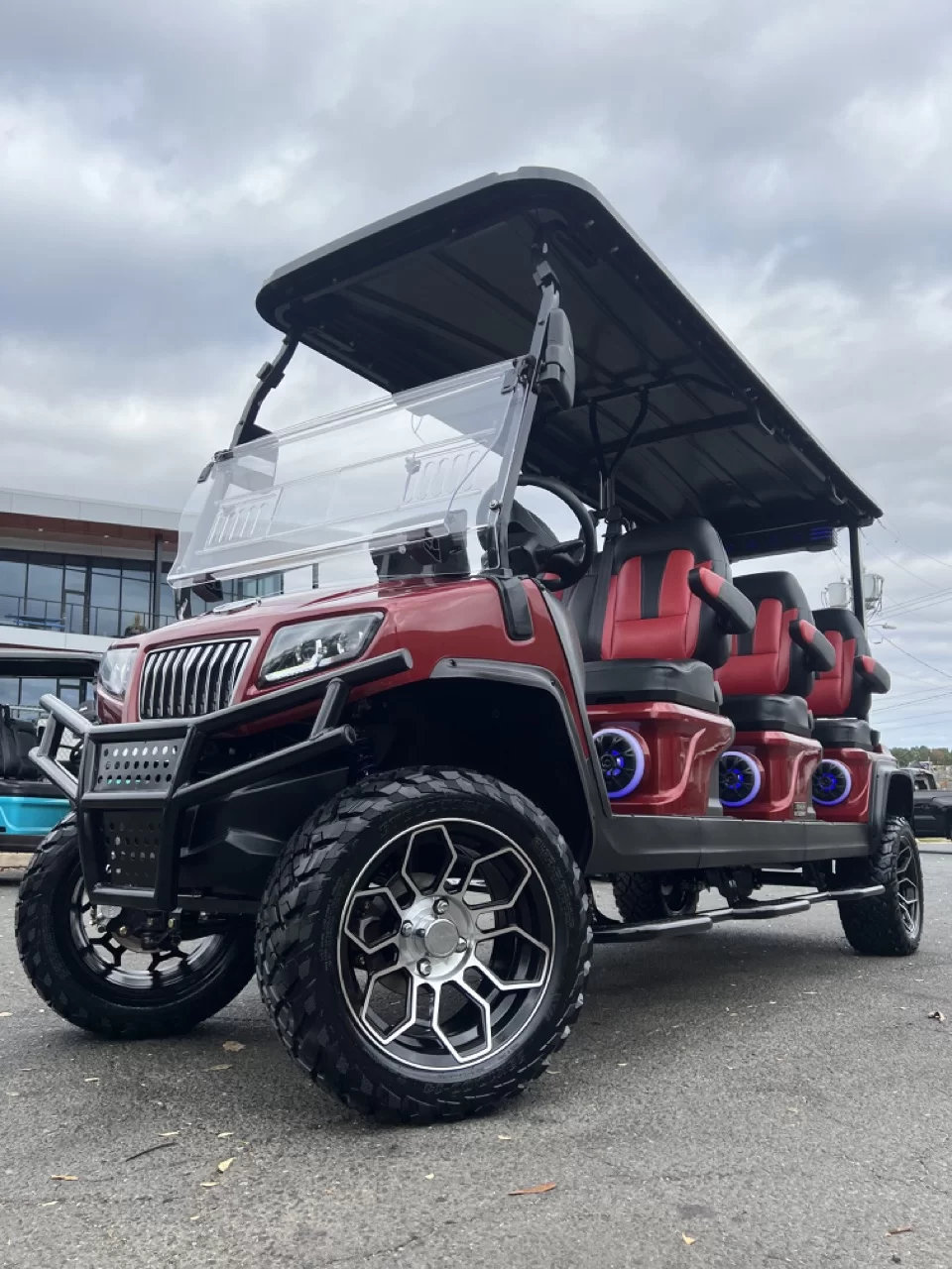 The 2025 Evolution D5 Maverick 6 electric golf wavegen, combined with electricity, luxurious and sophisticated technology, is a new cutting edge vehicle for an outstanding driving experience.
