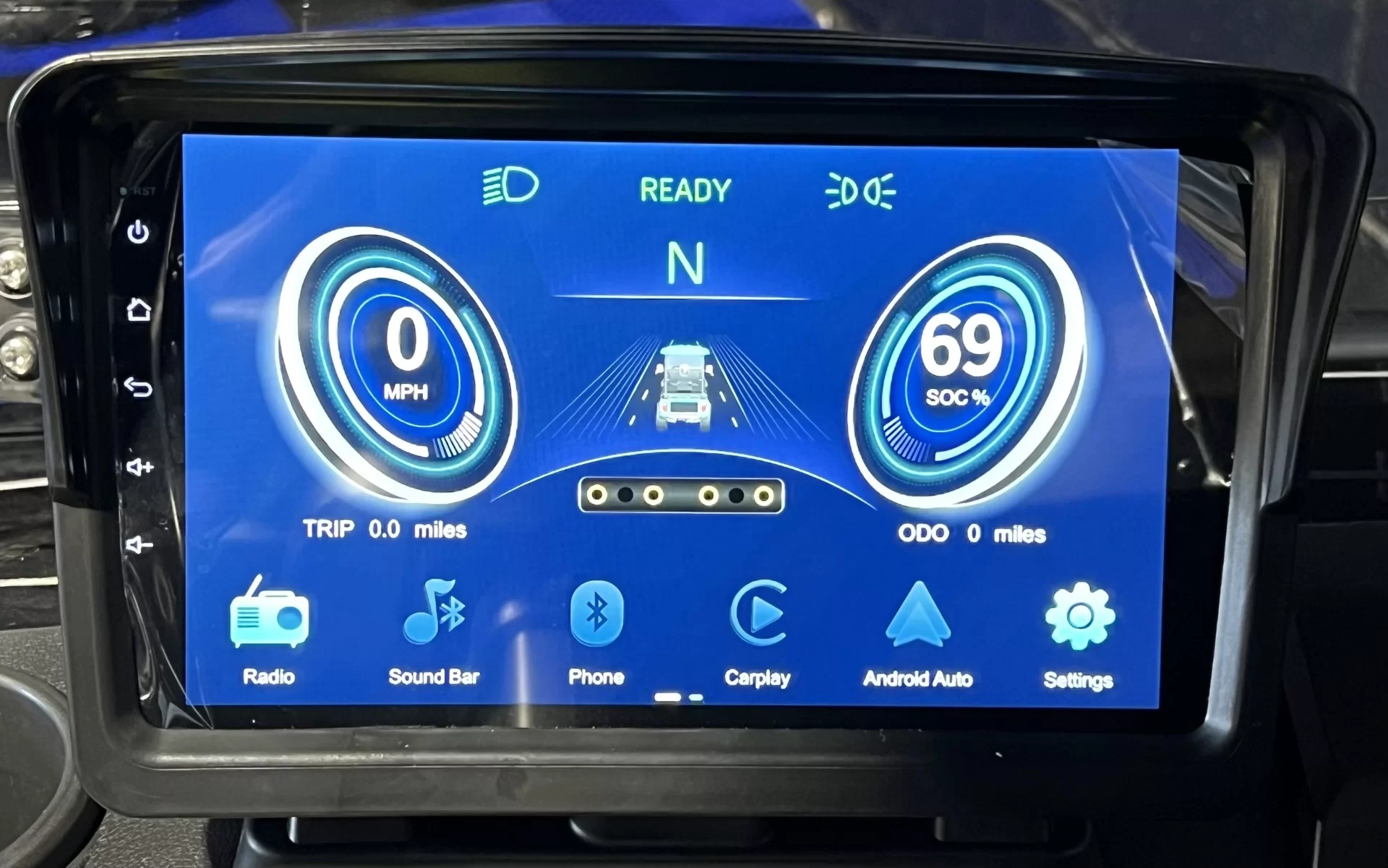 Display: 9-inch multi-functional touchscreen including speedometer, odometer, driving gear indicator, lights, radio, music, Bluetooth connection, and backup camera display