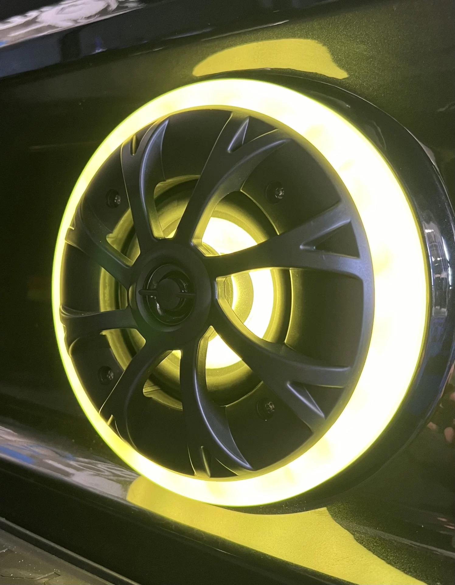 Audio: Premium Cuboid Evolution Sound Bar with wireless connectivity, adjustable lighting modes with LED speaker lights sync to music