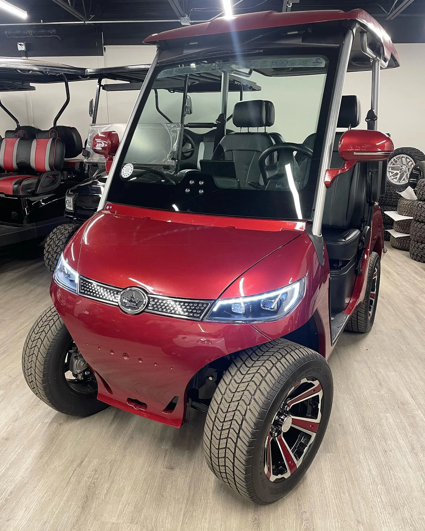 The Red 2024 Evolution D3 Electric Golf Cart is the first class personal vehicle that combines progressive technology, electricity and comfort. It has a variable motor motor and features a 8V lithium-ion battery system that ensures quick, gentle and efficient operation. The maximum speed of a golf car is up to 20 mph, making it ideal for nearby golf courses, closed communities and cruises. There is approximately a drive range. With a full load of